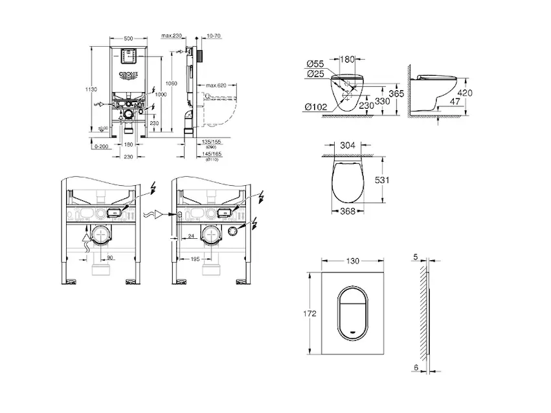 - integrovaný regulátor průtoku - modul tak lze využít s toaletami s bezokrajovým splachováním