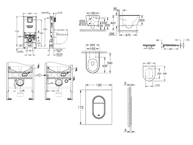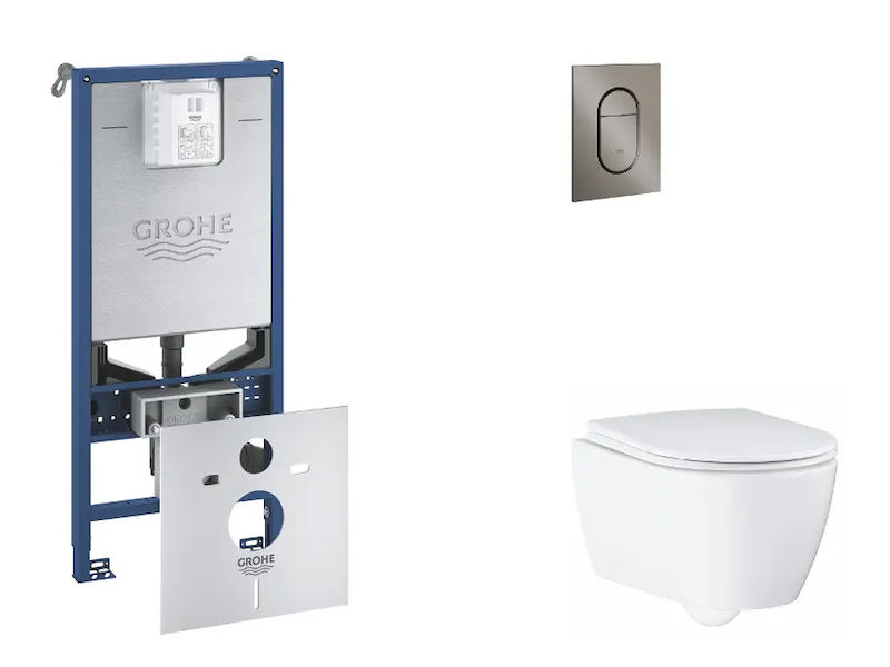Grohe Rapid SLX - Set předstěnové instalace, klozetu, sedátka SoftClose a tlačítka Arena Cosmopolitan S, kartáčovaný Hard Graphite SANI11BB5112