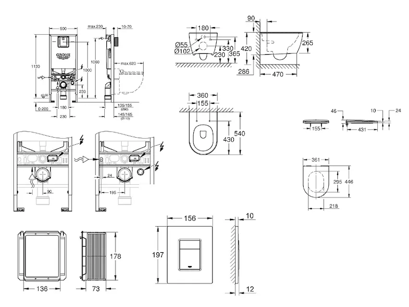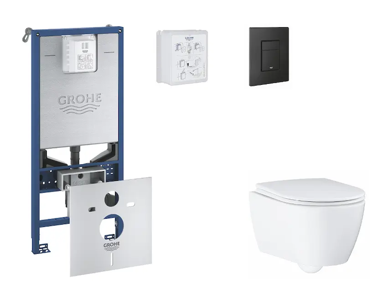 Grohe Rapid SLX - Set předstěnové instalace, klozetu, sedátka SoftClose a tlačítka Even, phantom black SANI11BB5110