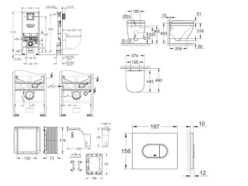- pro všechna splachovací tlačítka GROHE s rozměry 156 x 197 mm