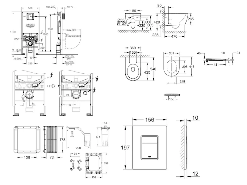 - pro všechna splachovací tlačítka GROHE s rozměry 156 x 197 mm