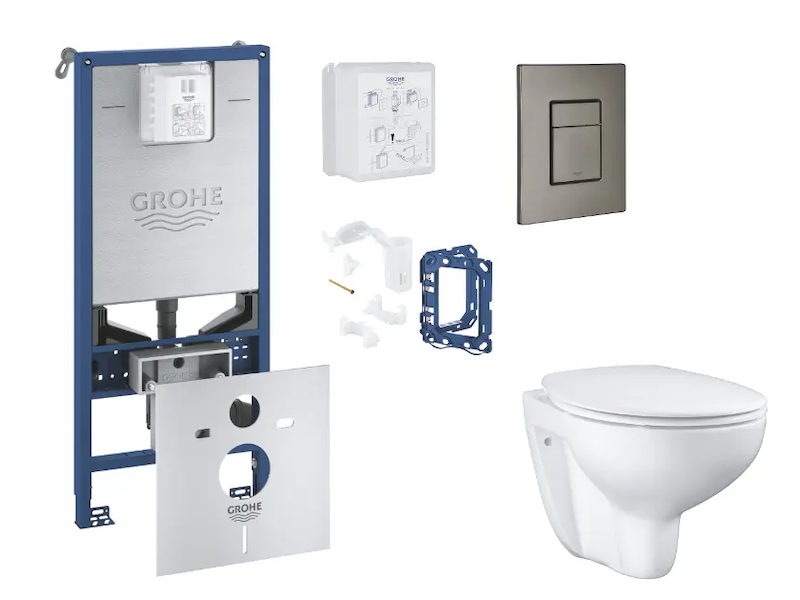 Grohe Rapid SLX - Set předstěnové instalace, klozetu, sedátka SoftClose, tlačítka Skate Cosmopolitan a sady pro vhazování tablet, kartáčovaný Hard Graphite SANI11BB5126
