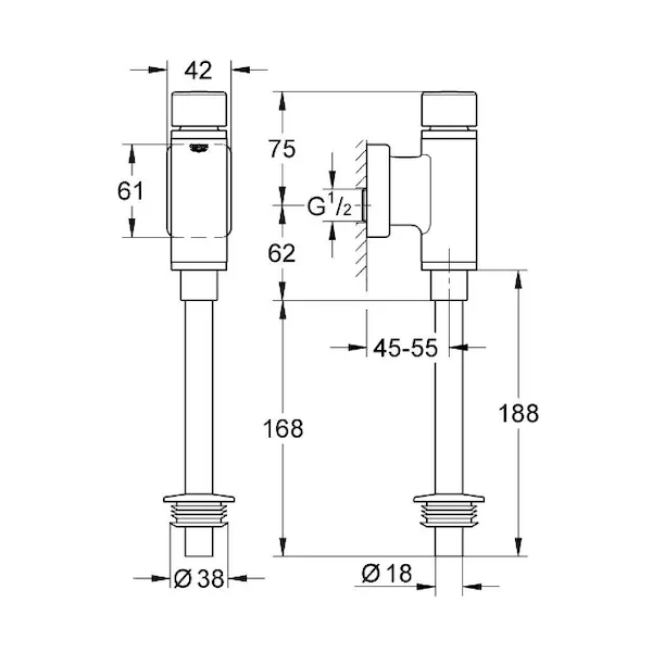 Grohe Rondo - Pisoárový splachovač, chrom 37339000