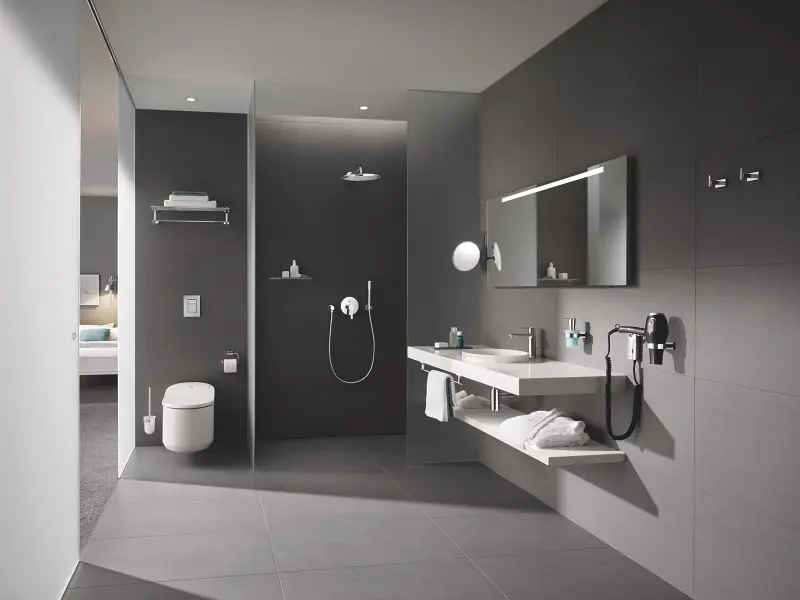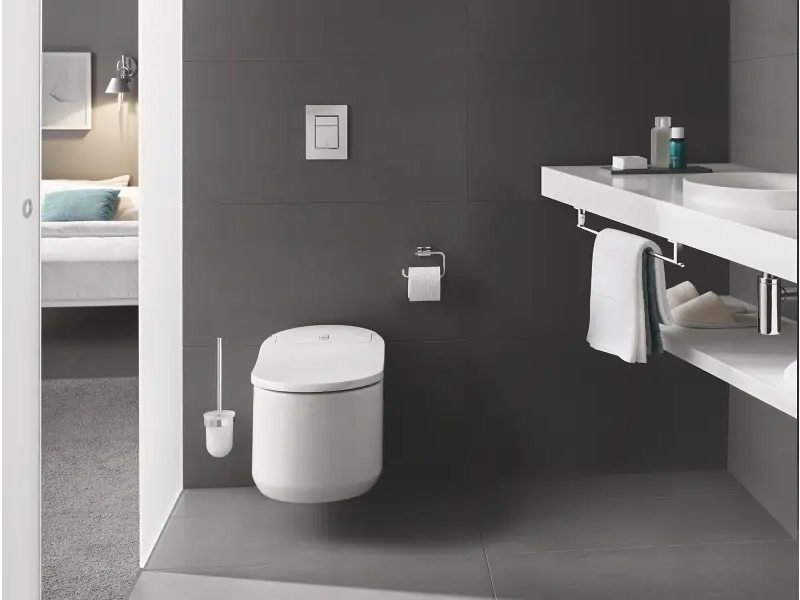Díky následujícím technologiím a funkcím je zajištěna praktičnost a snadná údržba – snímač na toaletě detekuje přítomnost přicházející osoby a automaticky otevře víko záchodové mísy a hlava sprchového ramena je čištěna před a po každém použití. K dispozici je také dodatečná instalace volitelného automatického splachování (vyžaduje sadu pro připojení splachovacího systému GROHE Sensia Arena pro instalační systém Rapid SL).
