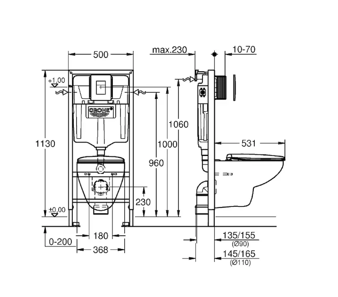 - předstěnový instalační modul se splachovací nádrží 6-9 l