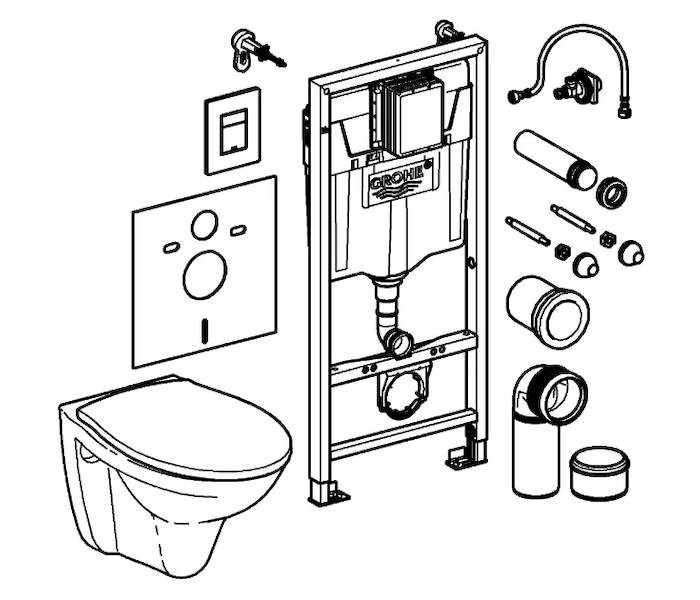 Kompletní instalační set pro závěsné WC obsahuje