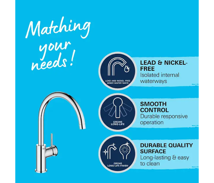 - GROHE Zero vedení vody uvnitř - bez niklu a olova