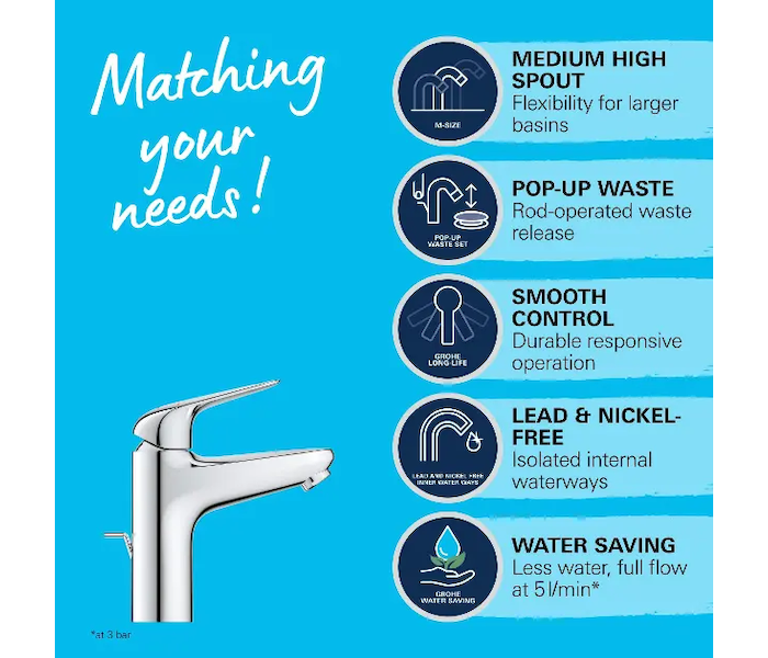 Grohe Swift - Umyvadlová baterie s výpustí, chrom 24325001