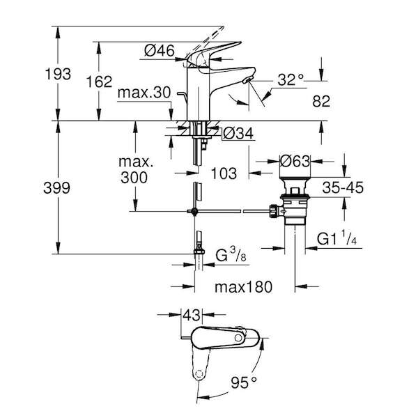 Grohe Swift - Umyvadlová baterie, s výpustí, studený start, chrom 24322001