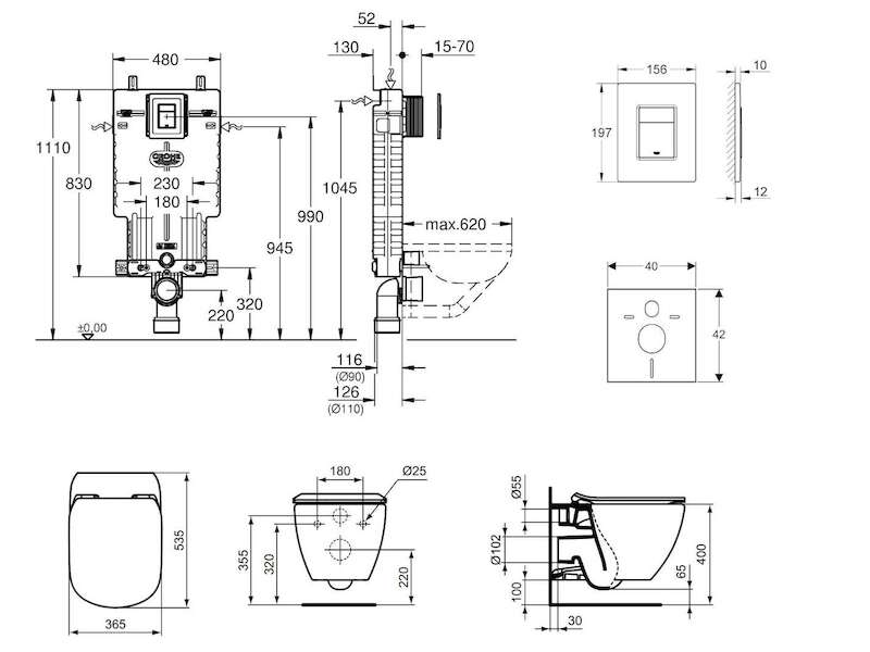 Grohe Uniset - Set předstěnové instalace, klozetu a sedátka Ideal Standard Tesi, tlačítka Skate Cosmopolitan, chrom 38643SET-KF obvykle 1-2 měsíce |