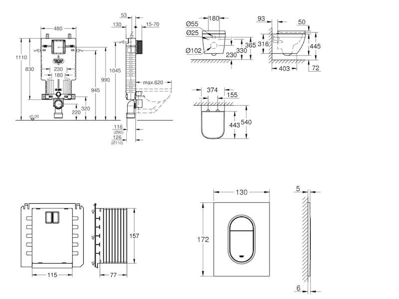 - pro vertikální nebo horizontální použití splachovacích tlačítek