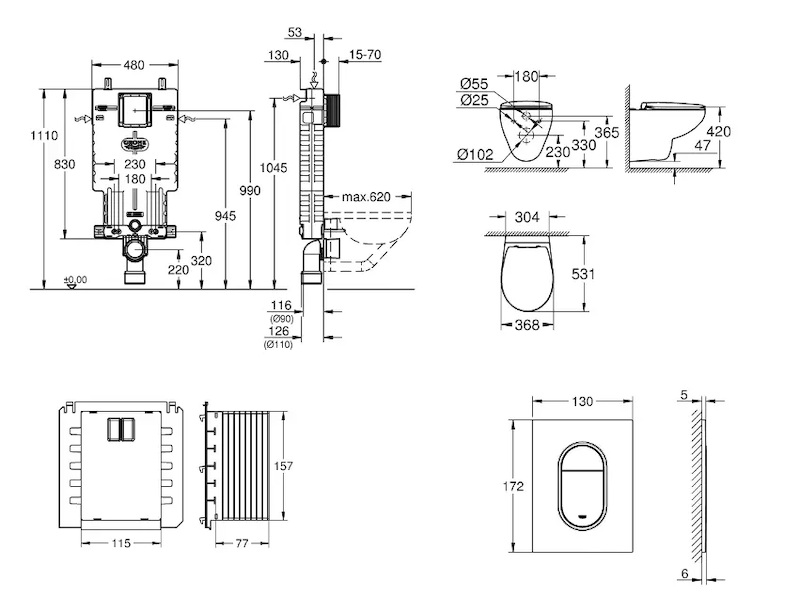 - pro vertikální nebo horizontální použití splachovacích tlačítek