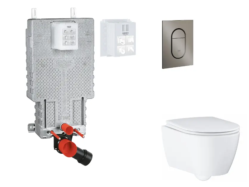 Grohe Uniset - Set předstěnové instalace, klozetu, sedátka SoftClose a tlačítka Arena Cosmopolitan S, kartáčovaný Hard Graphite SANI15BB5112