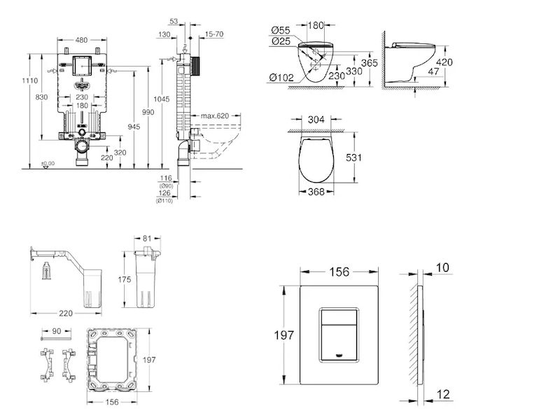- pro všechna splachovací tlačítka GROHE s rozměry 156 x 197 mm