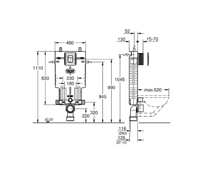 - předstěnový instalační prvek Grohe Uniset pro závěsné WC