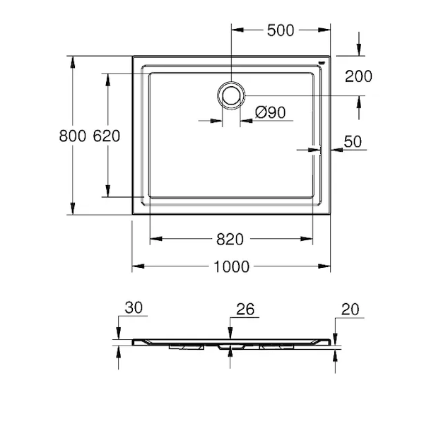 Grohe Vaničky - Sprchová vanička akrylátová 80x100 cm, alpská bílá 39306000