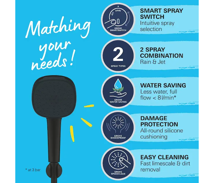 Grohe Vitalio Comfort - Set sprchové hlavice, držáku a hadice, 2 proudy, matná černá 263992431