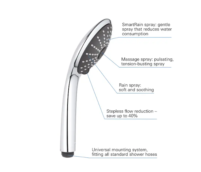 - 3 sprchové proudy: Rain, Massage, SmartRain