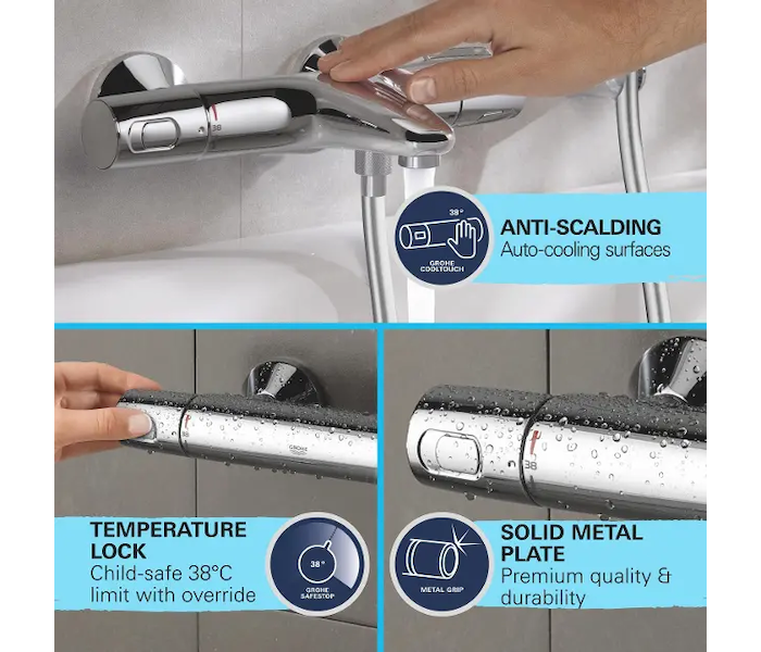 - GROHE SafeStop Plus volitelný omezovač teploty na úrovni 43°C