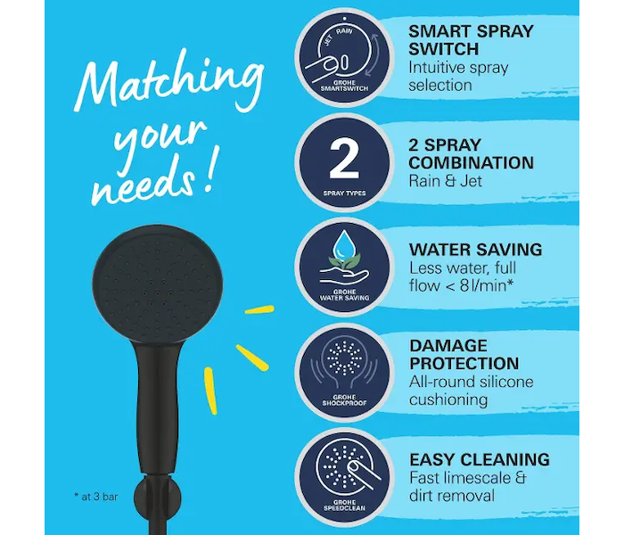 Grohe Vitalio Start - Set sprchové hlavice, držáku a hadice, 2 proudy, matná černá 279502431