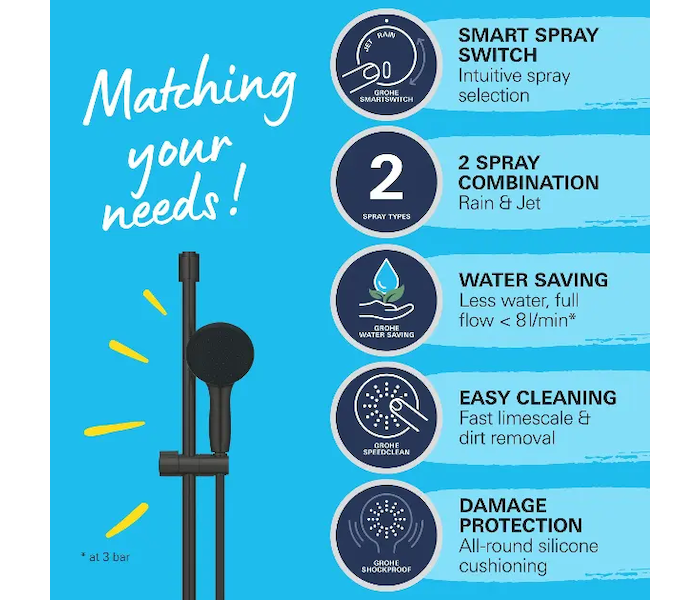 Grohe Vitalio Start - Set sprchové hlavice, tyče a hadice, 2 proudy, matná černá 279482431