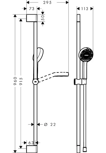 - průměr sprchové tyče: 22 mm