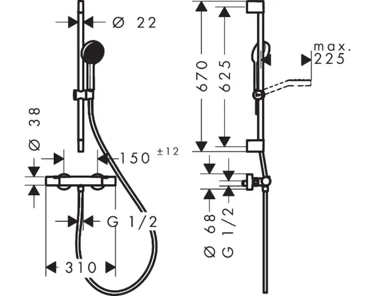 Sprchový systém 95 2jet EcoSmart, s termostatem Ecostat Fine a sprchovou tyčí 65 cm