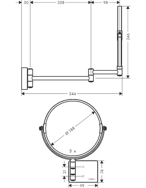 Hansgrohe AddStoris - Kosmetické nástěnné zrcátko, kartáčovaný černý chrom 41791340