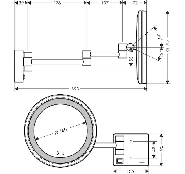Hansgrohe AddStoris - Kosmetické nástěnné zrcátko s LED osvětlením, kartáčovaný černý chrom 41790340 Skladem u dodavatele 4 ks |