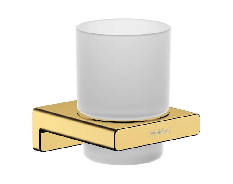 Hansgrohe AddStoris - Sklenka na kartáčky a pastu s držákem, matné sklo/leštěný vzhled zlata 41749990