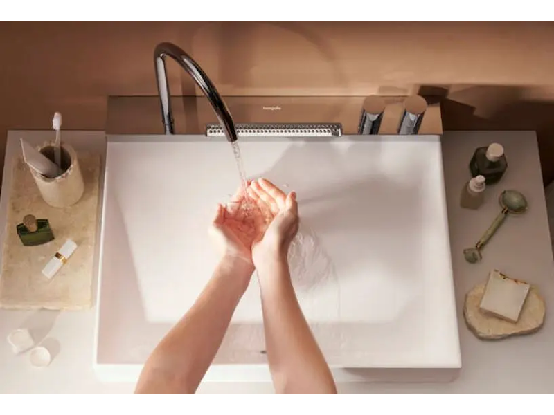 - Na okraj umyvadla byla přidána speciální fontánka se spodním proudem Rain, pro snadnější oplachování obličeje a příjemné ranní probuzení a večerní odličování.