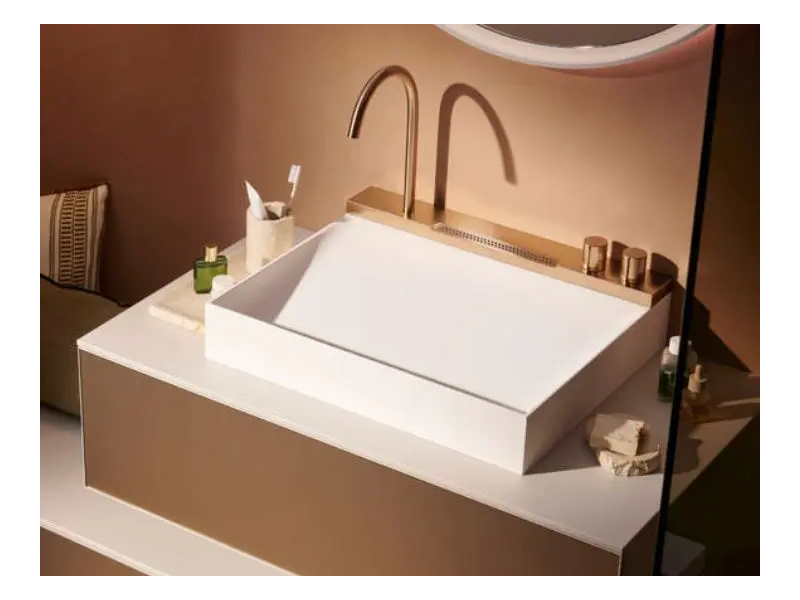 - Na okraj umyvadla byla přidána speciální fontánka se spodním proudem Rain, pro snadnější oplachování obličeje a příjemné ranní probuzení a večerní odličování.