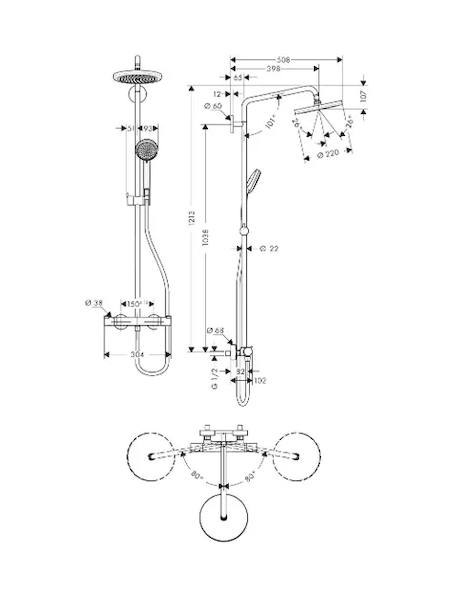 Hansgrohe Croma 220 - Sprchový set Showerpipe s termostatem, 22 cm, 4 proudy, chrom 27185000