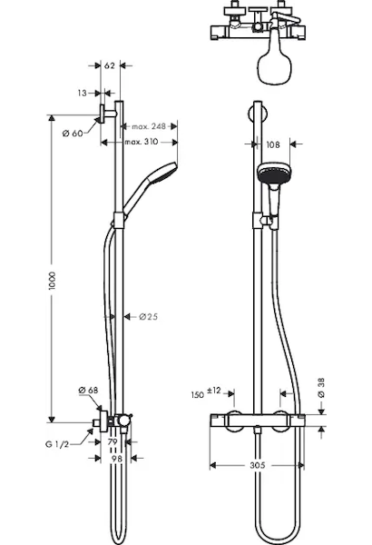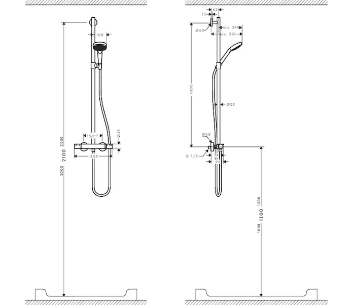 - výškově stavitelný držák ruční sprchy