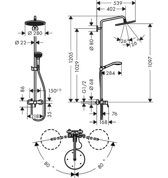 Sprchový set Croma Select S Showerpipe 280, 1jet