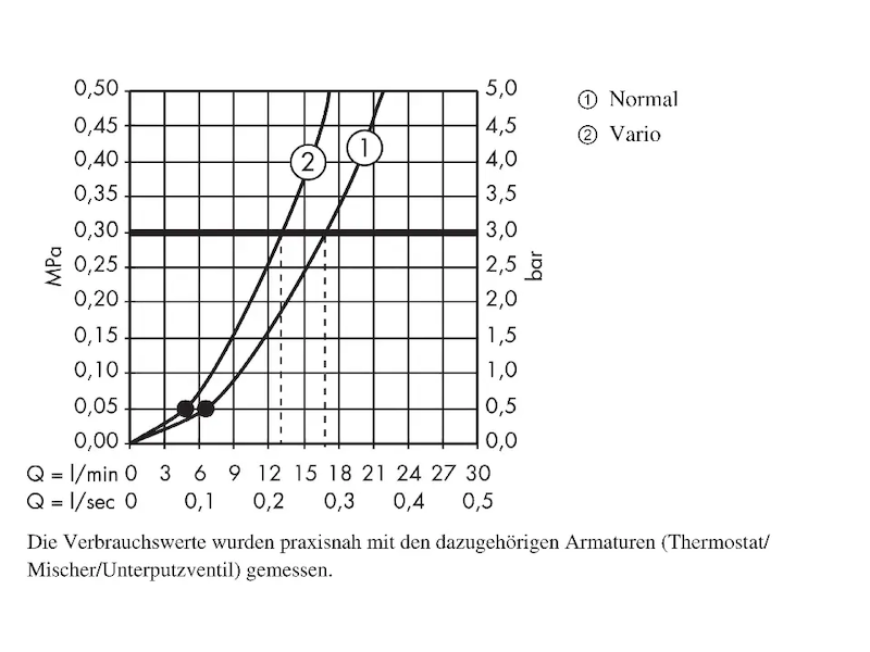 - minimální průtokový tlak: 1 bar