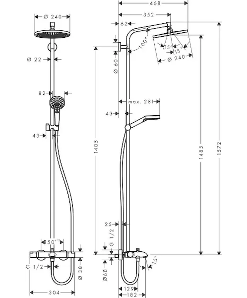 Hansgrohe Crometta - Termostatická vanová baterie Showerpipe S 240, chrom 27320000