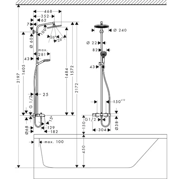 Termostatická vanová baterie Crometta S Showerpipe 240, 1jet