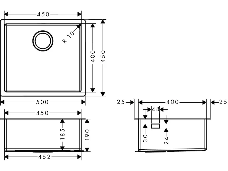 Hansgrohe Dřezy - Podstavný dřez S719-U450, nerezová ocel 43426800