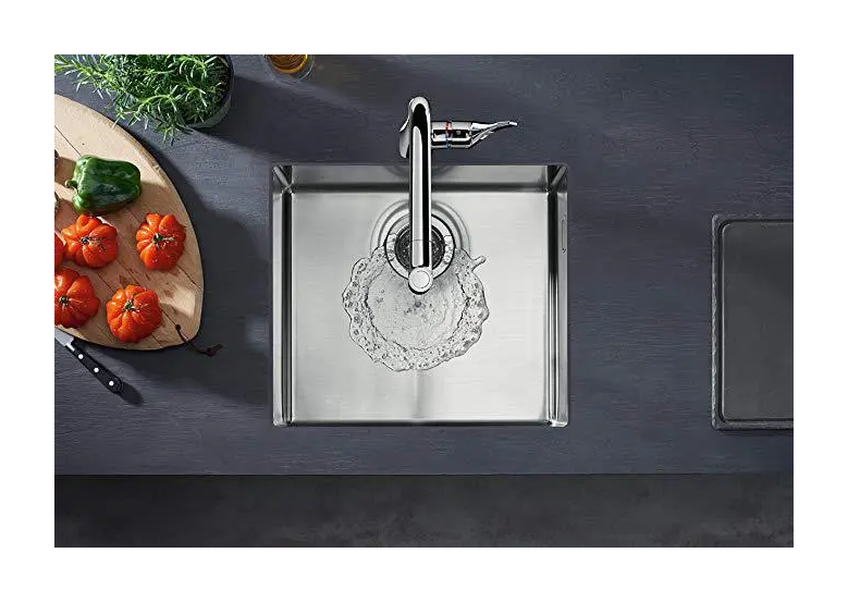 Dřez je ručně svařovaný - díky nerezové oceli o tloušťce 1 mm a zesílené části pro montáž baterie je vysoce stabilní. Nerezová ocel je nejen pevná, ale i odolná vůči agresivním látkám, jako jsou například ovocné kyseliny, také nepodléhá korozi, je hygienická a odolává i vysokým teplotám. Zapuštěná instalace vytváří souvislý přechod mezi dřezem a pracovní deskou. Přepad je diskrétně umístěn na boční straně. Dřez má minimalistický design a díky jeho přesným hranám a zaoblením rohů se stává kvalitním kuchyňským doplňkem, který bude sloužit mnoho let.