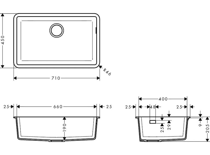 Dřez k zabudování pod pracovní desku 660