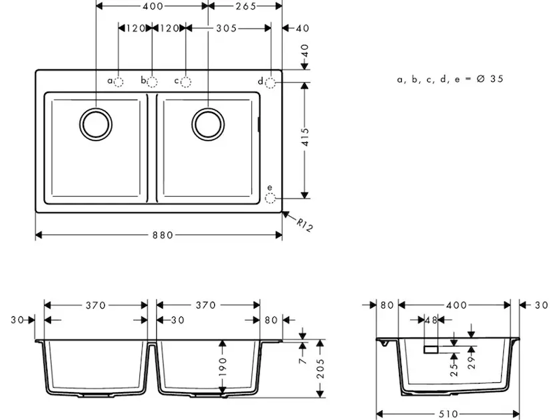 - hloubka dřezu: 190 mm