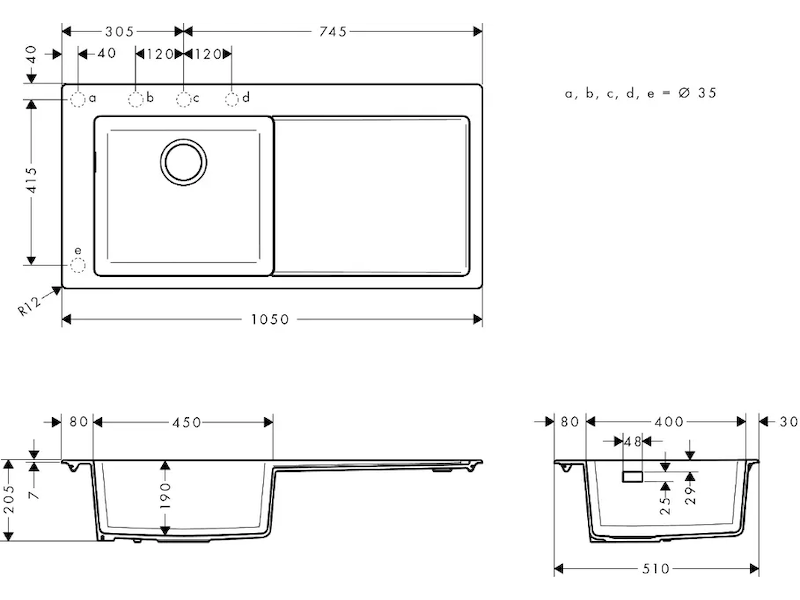 Hansgrohe Dřezy - Vestavný granitový dřez S5110-F45, kamenná šedá 43330290 Obvykle 1-2 měsíce |