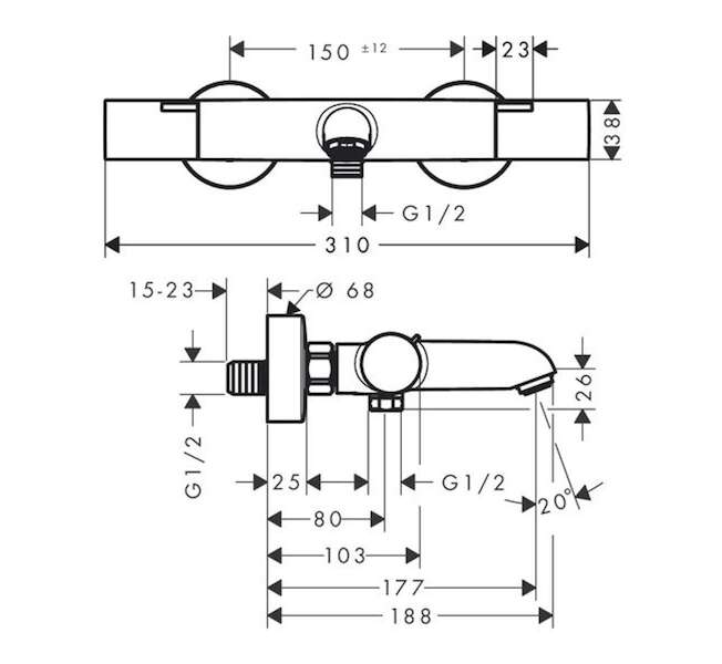 Hansgrohe Ecostat Fine - Termostatická vanová baterie, matná černá 13325670 skladem u dodavatele 3 ks |