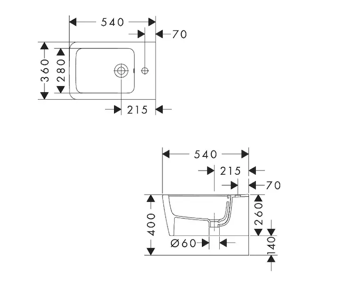 Hansgrohe EluPura Original Q - Závěsný bidet, otvor pro baterii, bílá 60284450 Obvykle 1-2 měsíce |