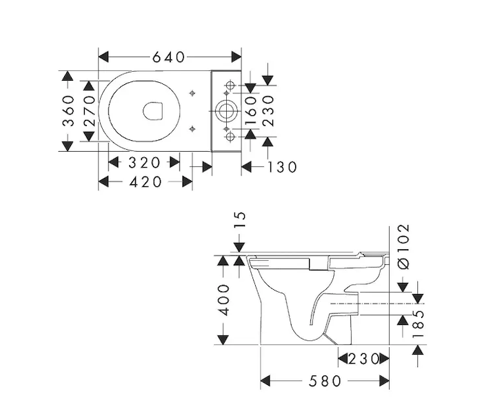 Hansgrohe EluPura Original S - WC kombi mísa, zadní odpad, Rimless, HygieneEffect, bílá 62038450