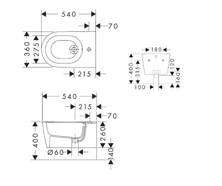 Hansgrohe EluPura Original S - Závěsný bidet, otvor pro baterii, SmartClean, bílá 61171450