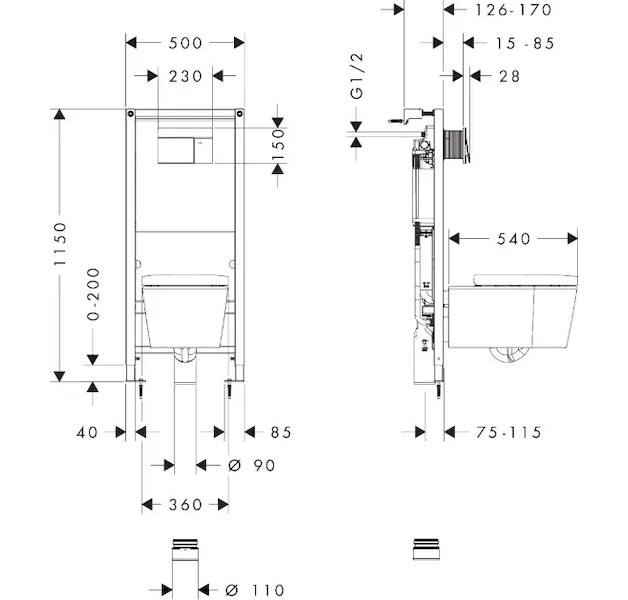 - nastavitelná hloubka vypouštěcího potrubí: 75 - 115 mm