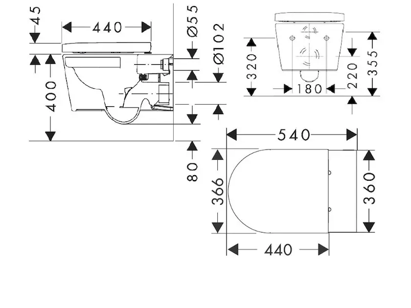- rozteč středů uchycení WC sedátka: 160 mm