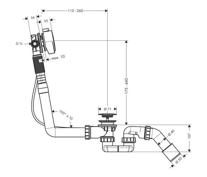 - výška vodní uzávěry: 50 mm